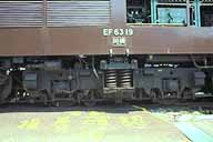 | EF63 19が展示され自由に近づく事が出来ます。 エアーフィルターがはずされ、バッテリー取り出し口が開放された。 普段撮れないアングルからも撮影OKでした。 |