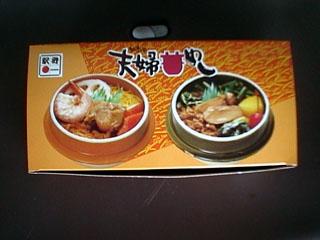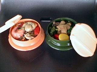 片方は海の幸、片方は山の幸がご飯の上に乗っています。
