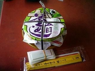 妙高高原駅の駅弁、石田屋さん「妙高の 笹寿司」 ホームでの立ち売りです。 この日は急行「赤倉」の、窓を開けて買いました。 |