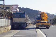 来春に運転が予定されている トロッコ列車を牽引するディーゼル機関車を、 整備のために輸送します。 |