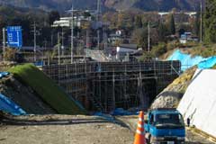 鉄筋を組んでいる範囲が ボックス部分からその周辺へ広がっています。 国道18号線方向を望む |