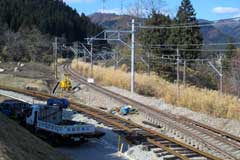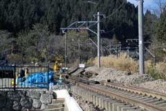 峠の湯では、 下り線から峠の湯駅への 分岐部分の工事に取り掛かっています。 駅部分にはレールが敷かれています。 |
